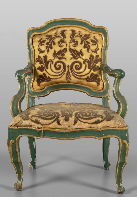 Poltrona Luigi XIV in legno intagliato e laccato, Piemonte sec.XVIII