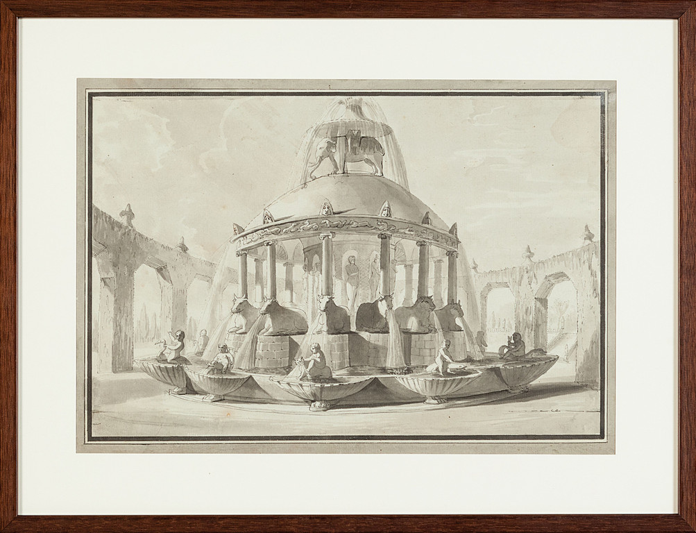 Scuola italiana fine sec.XVIII/inizi sec.XIX "Prospetto di fontana" disegno