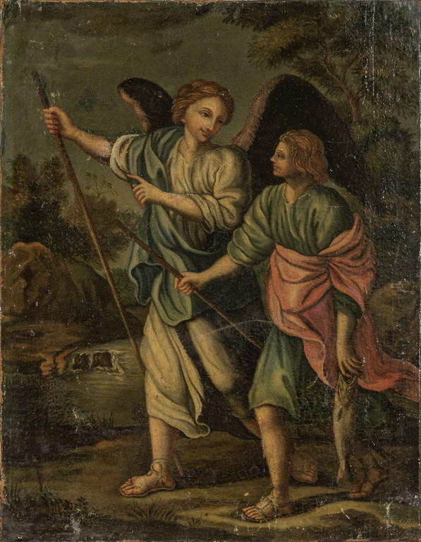 Scuola italiana sec.XVIII "L'Arcangelo Raffaele con Tobiolo" olio