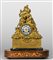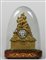 Orologio in bronzo dorato raffigurante giovane donna con cestino e colomba, quadrante in porcellana policroma, base in marmo, Francia sec.XIX, dentro campana di vetro con base in legno lastronato