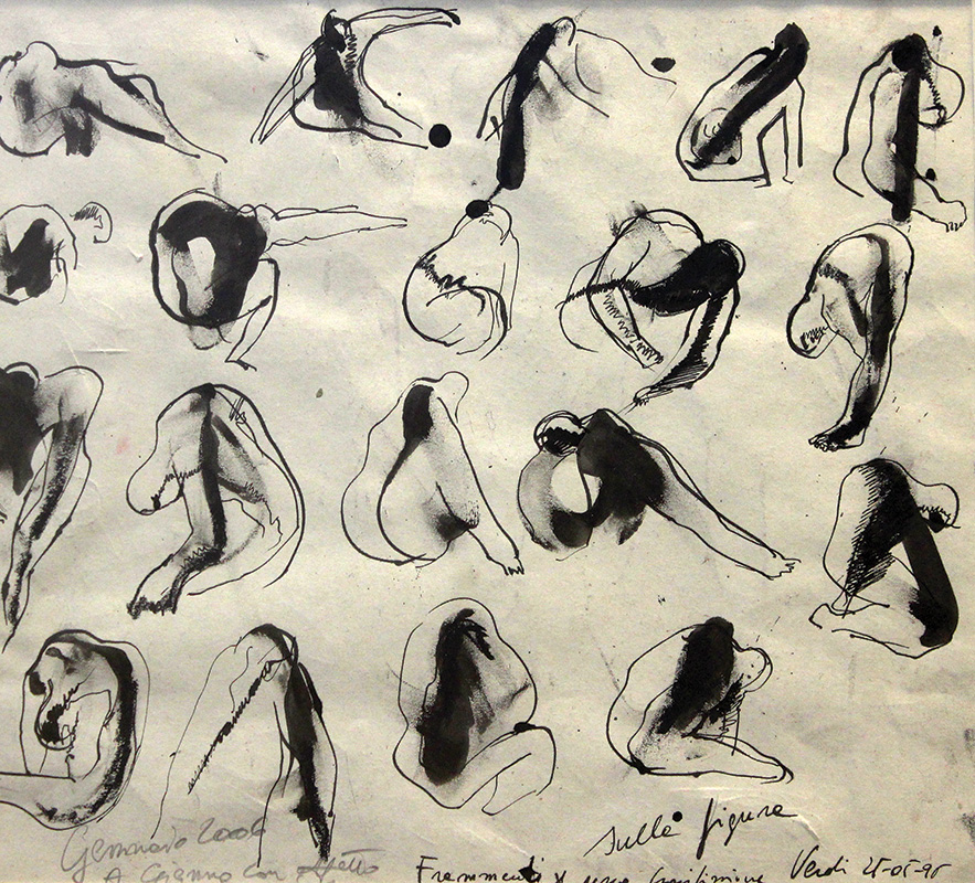 Verdi Alessandro Frammenti per una composizione sulla figura tecnica mista su carta, cm. 34x43 firmato datato e intitolato in basso a destra, dedicato in basso a sinistra