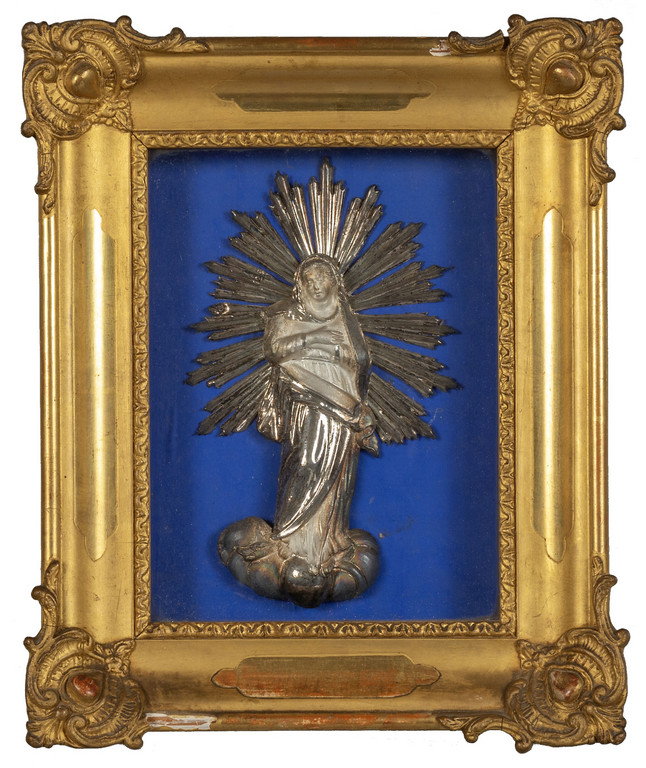 Madonnina in argento, sec.XVIII, cornice in legno intagliato, sec.XIX