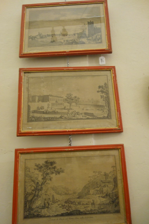 Ville venete, sette stampe, f.te Zocchi, cornici in legno laccato rosso e oro