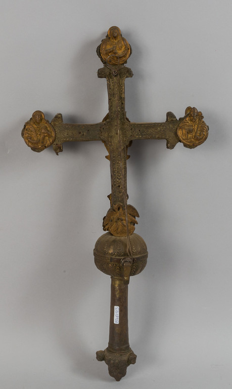 Croce astile in metallo argentato, figura centrale e canti in bronzo dorato, Veneto sec.XVII