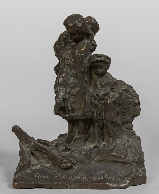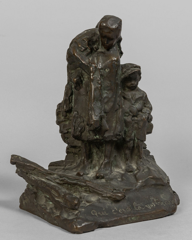 "Qui c'era la nostra casa" scultura in bronzo f.ta, inizi sec.XX