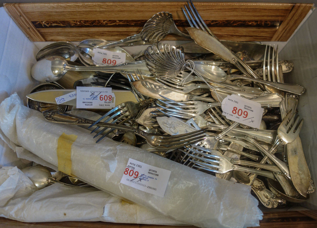 Precedente Lotto 0809 Successivo Aste Boetto - Via Mura dello Zerbino 10R, 16122 Genova Asta di Antiquariato ed Arte Orientale Asta di Antiquariato ed Arte Orientale martedì 28 febbraio 2023 ore 10:30 (UTC +01:00) Varie posate in argento<br>Kg.tot.4 Varie posate in argentoKg.tot.4