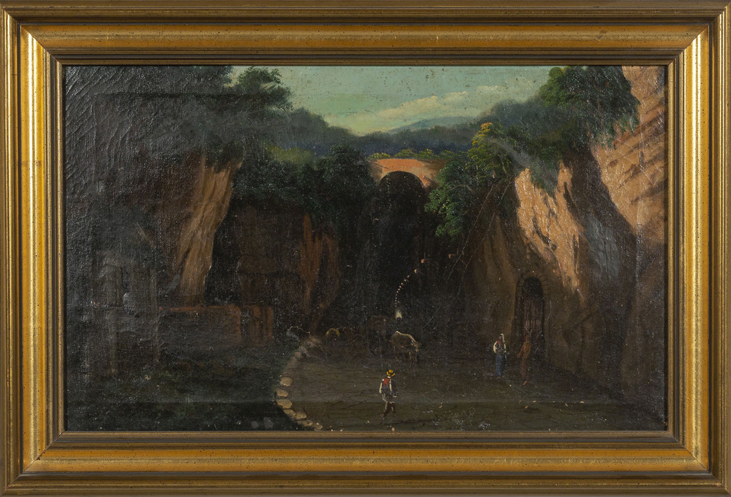 Scuola napoletana fine sec.XIX "Grotta con personaggi" olio