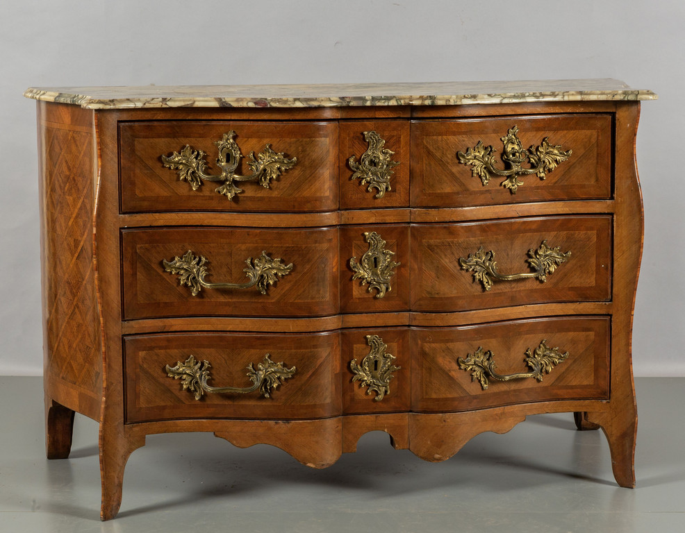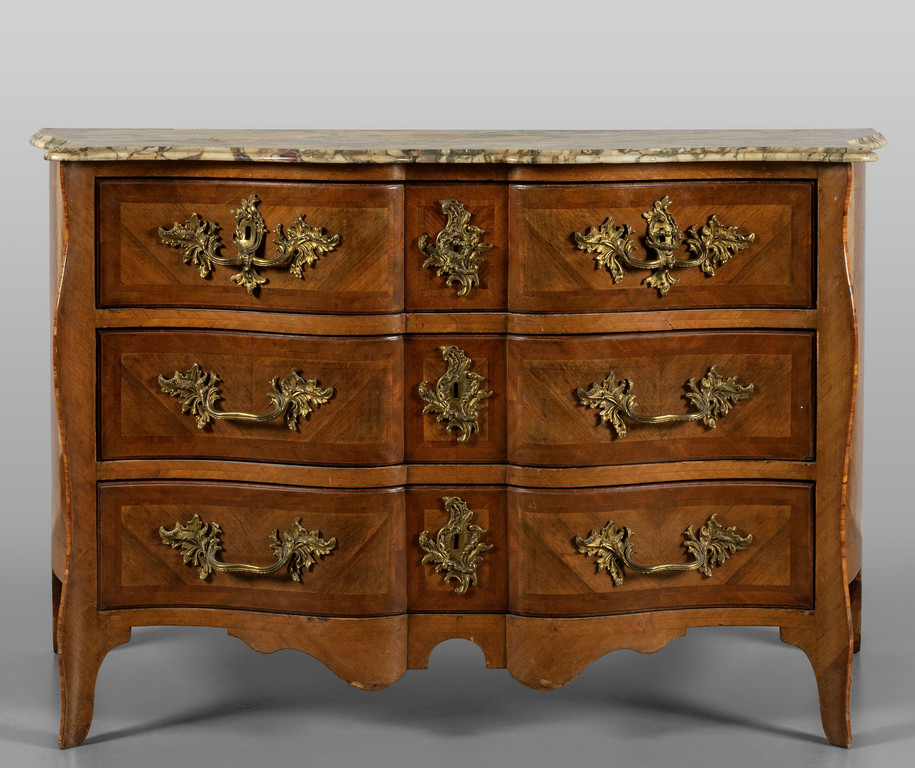Comò in stile Luigi XIV a tre cassetti lastronato
