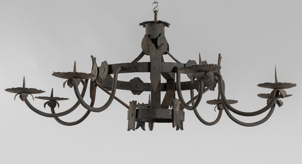 Lampadario in ferro battuto ad otto luci, fine sec.XIX