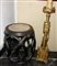 Sgabello cinese in legno laccato a finto bambù e lampada neogotica in bronzo dorato