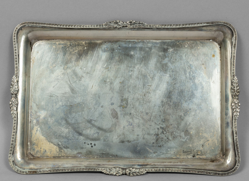 Vassoietto in argento<br>cm.31,5x21,5, gr.tot.590