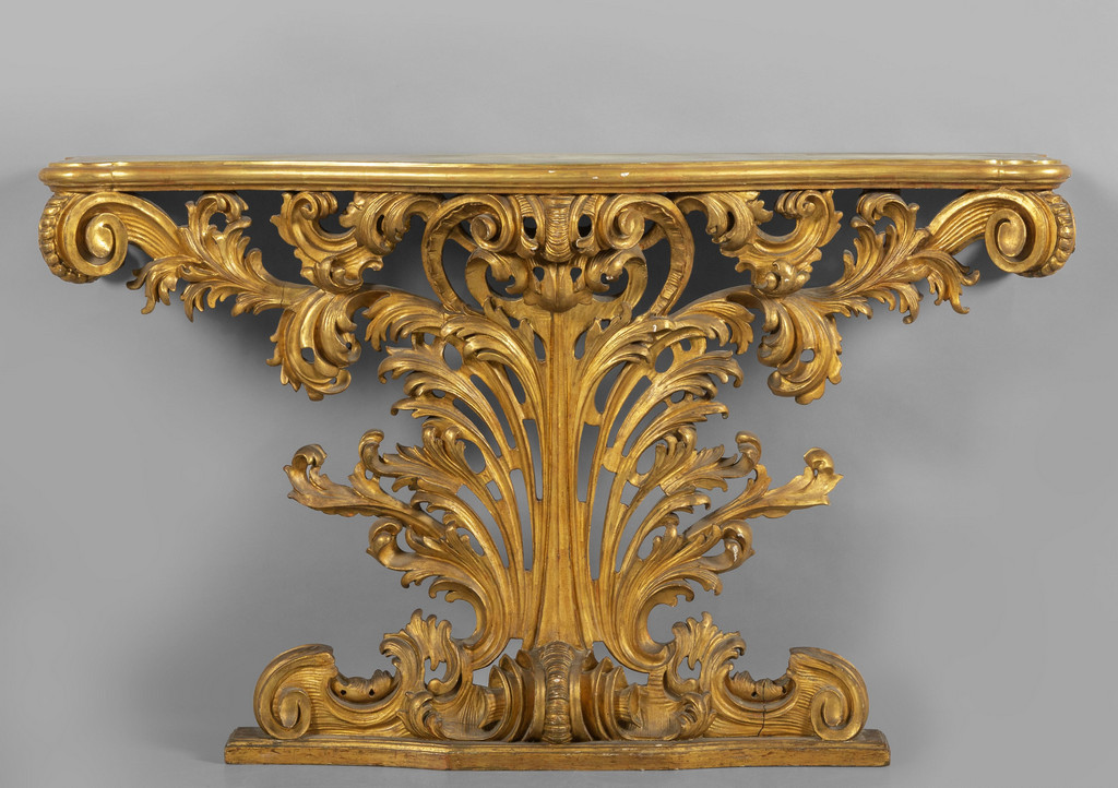 Console da muro in legno intagliato e dorato, inizi sec.XX