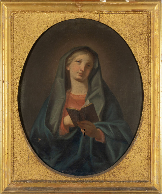 "Madonnina in lettura" olio di forma ovale, sec.XVIII