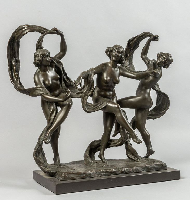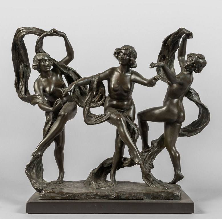 Le Tre Grazie, scultura in bronzo a patina scura,