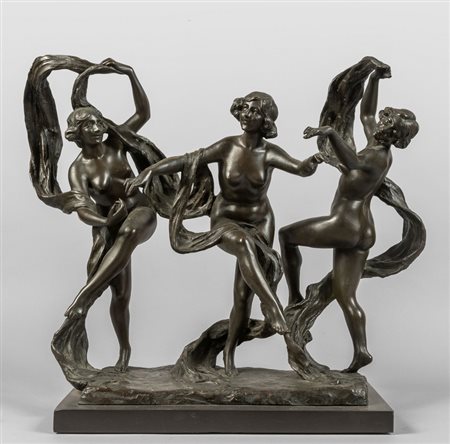 Le Tre Grazie, scultura in bronzo a patina scura, fine sec.XIX