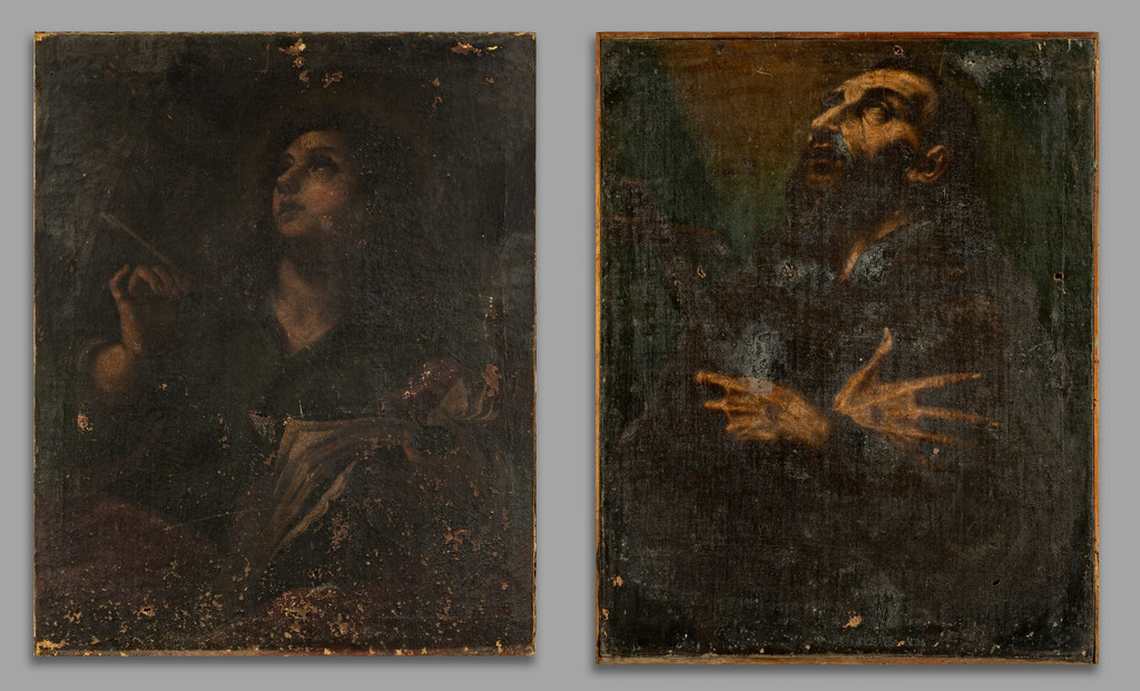 Scuola italiana sec.XVII "Santo" e "Santa in estasi" coppia di olii