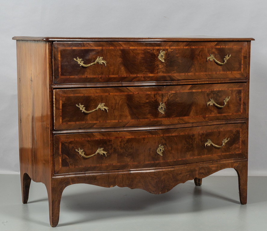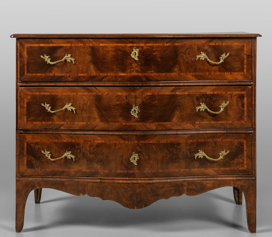 Lotto 1000 | Comò Luigi XIV in noce a tre cassetti filettato,