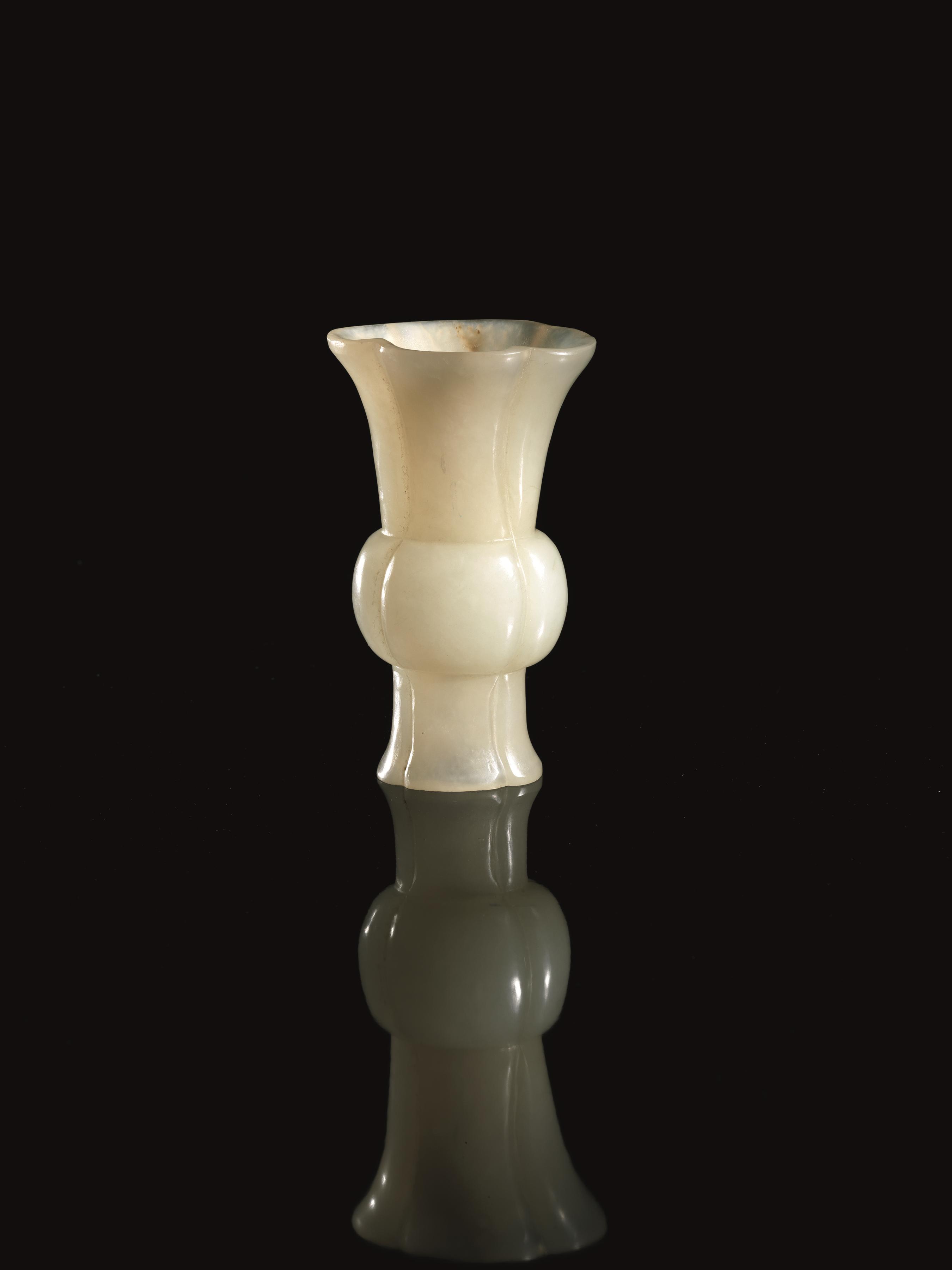 Vasetto Cina sec. XIX, di forma arcaica e polilobato, in giada celadon, alt. cm 9,5