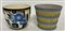 Lotto composto da un vaso in ceramica con decoro futurista all'aerografo (h cm 10.5) e un vaso art déco con superficie corrugata e decoro policromo all'aerografo, a settori orizzontali gialli e grigi (h cm 10). Italia, anni '20/'30. (difetti)