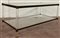 Tavolino da salotto con struttura in ottone e gambe in plexiglass, due ripiani in vetro. Italia, anni '70/'80. (cm 102x46x57) (difetti)