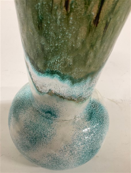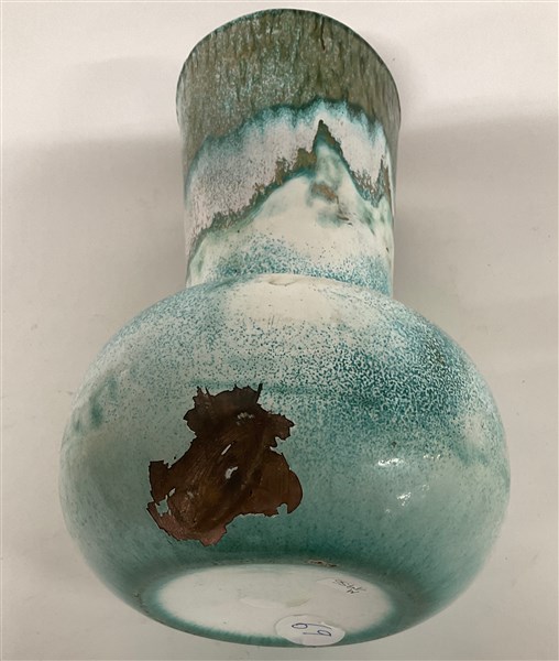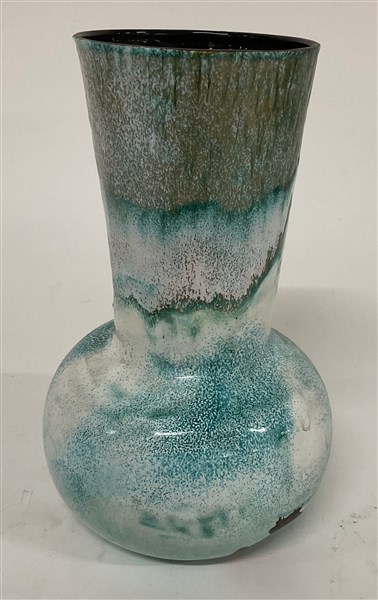 Vaso in rame smaltato nei toni del bianco, verde e oro. Italia, anni '50. (h cm 27) (difetti)