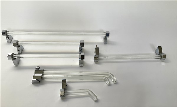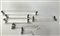Set da bagno in vetro trasparente incolore e metallo cromato composto da sei pezzi. Seconda metà secolo XX. (lievi difetti)