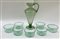 Manifattura di Murano. Lotto composto da un versatoio e sette ciotoline da macedonia in vetro soffiato trasparente verde. Inizio secolo XX. (h cm 29) (difetti)
