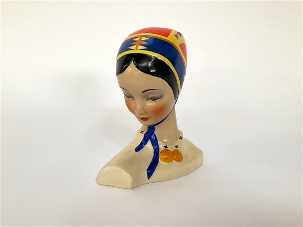 Essevi Testa in ceramica policroma raffigurante donna con copricapo tradizionale