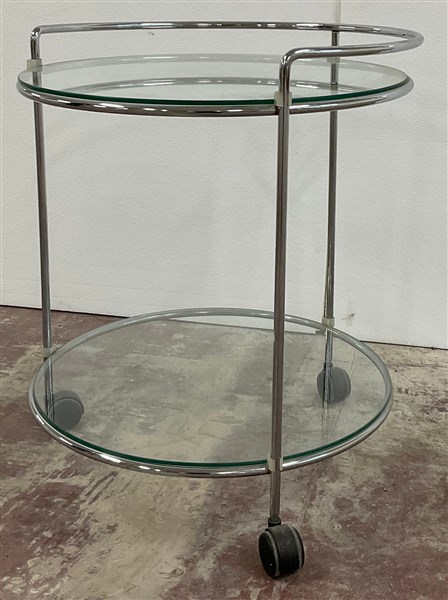 Lotto 308 | Carrellino di forma circolare a due ripiani in vetro, struttura in metallo crom