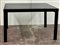 Tavolo con struttura in metallo verniciato nero, piano in vetro fumé. Italia, a