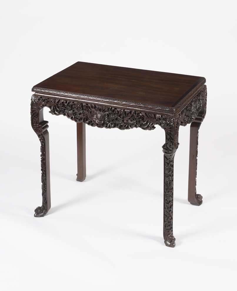 Raro tavolo rituale, Cina, fine Dinastia Qing, in zitan intagliato e hongmu,...