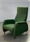 Poltrona reclinabile rivestita in tessuto verde con struttura in metallo e legno. Produzione Mauri Ducal, Milano, anni '60. recante etichetta metallica al retro. (cm 77x95x73) (difetti)