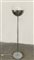 Lampada da terra con struttura in metallo cromato e diffusore sferico in vetro lattimo. Italia, anni '70. (h cm 153) (difetti)