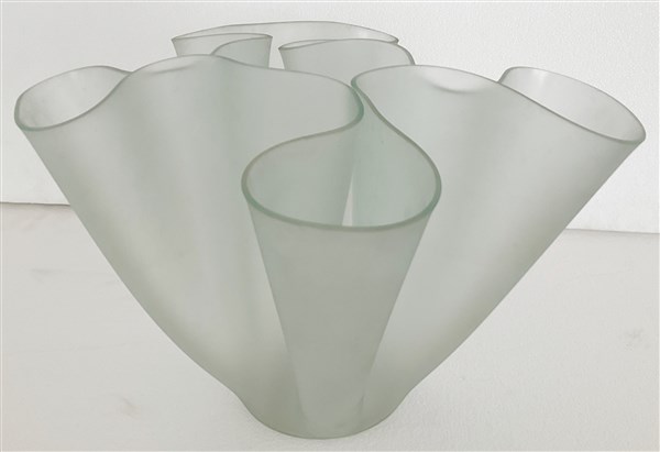 Vaso "Cartoccio" modello "2029". Produzione Fontana Arte, Milano, produzione recente. Vetro satinato azzurrino. (lievi difetti)