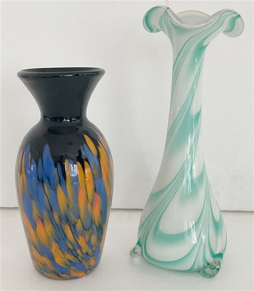 Lotto di due vasi in vetro soffiato con decori differenti. Seconda metà secolo