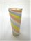 Manifattura di Murano, vaso in vetro incamiciato lattimo e decorato con fasce spiraliformi azzurre, gialle e lattimo. Seconda metà secolo XX. (h cm 39,5)