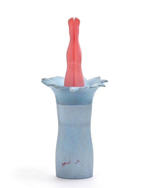 Scultura in metacrilato policromo raffigurante una tuffatrice. Anni '90/'00. Fi