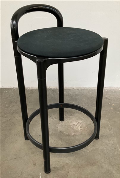 Sgabello modello "Polo". Produzione Kartell, Italia, anni '80. Metallo smaltato nero e metacrilato con cuscino. Marcato. (cm 40x79x42)