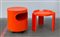 Unito ad un tavolino color arancio di produzione Kartell. (Comodino: d cm 39, h cm 45, Tavolino: d cm 46, h cm 37) (lievi difetti)