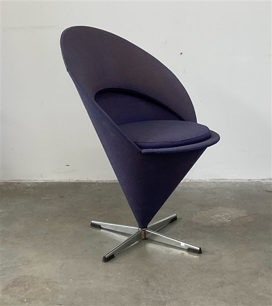 Sedia modello "Cone Chair". Produzione Vitra, Svizzera, anni '90 ca. (disegno del 1958). Acciaio e tessuto viola. (cm 57x83x62) (difetti)