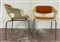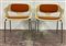 Coppia di poltroncine. Produzione Soloform, Germania, 1972. Materiale plastico bianco, tubolare metallico e tessuto arancione. Marcate sotto la base. (cm 61x74,5x50) (lievi difetti)