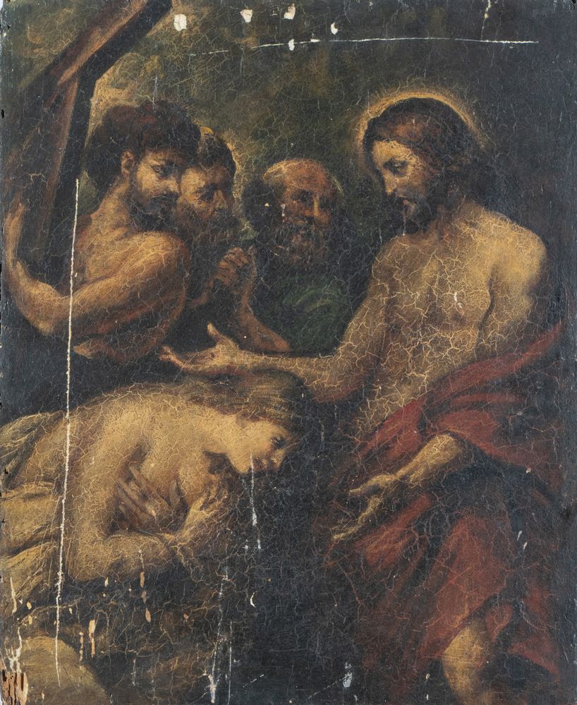 Maestro del XVIII/XIX secolo. “Adorazione di Cristo”. Olio su tavola. Cm...