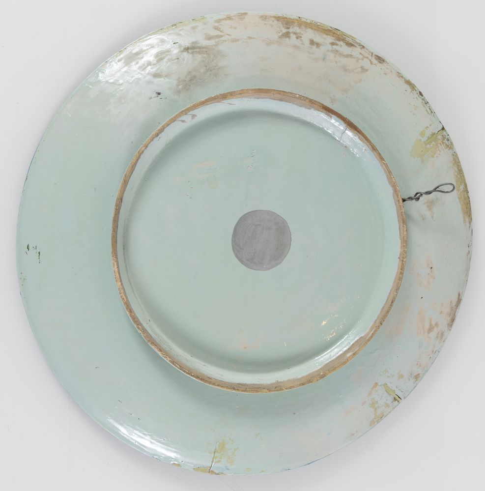 Grande piatto in maiolica decorato sui toni del blu. Inizio del XVIII secolo. Ø: cm 54,5x5,5.