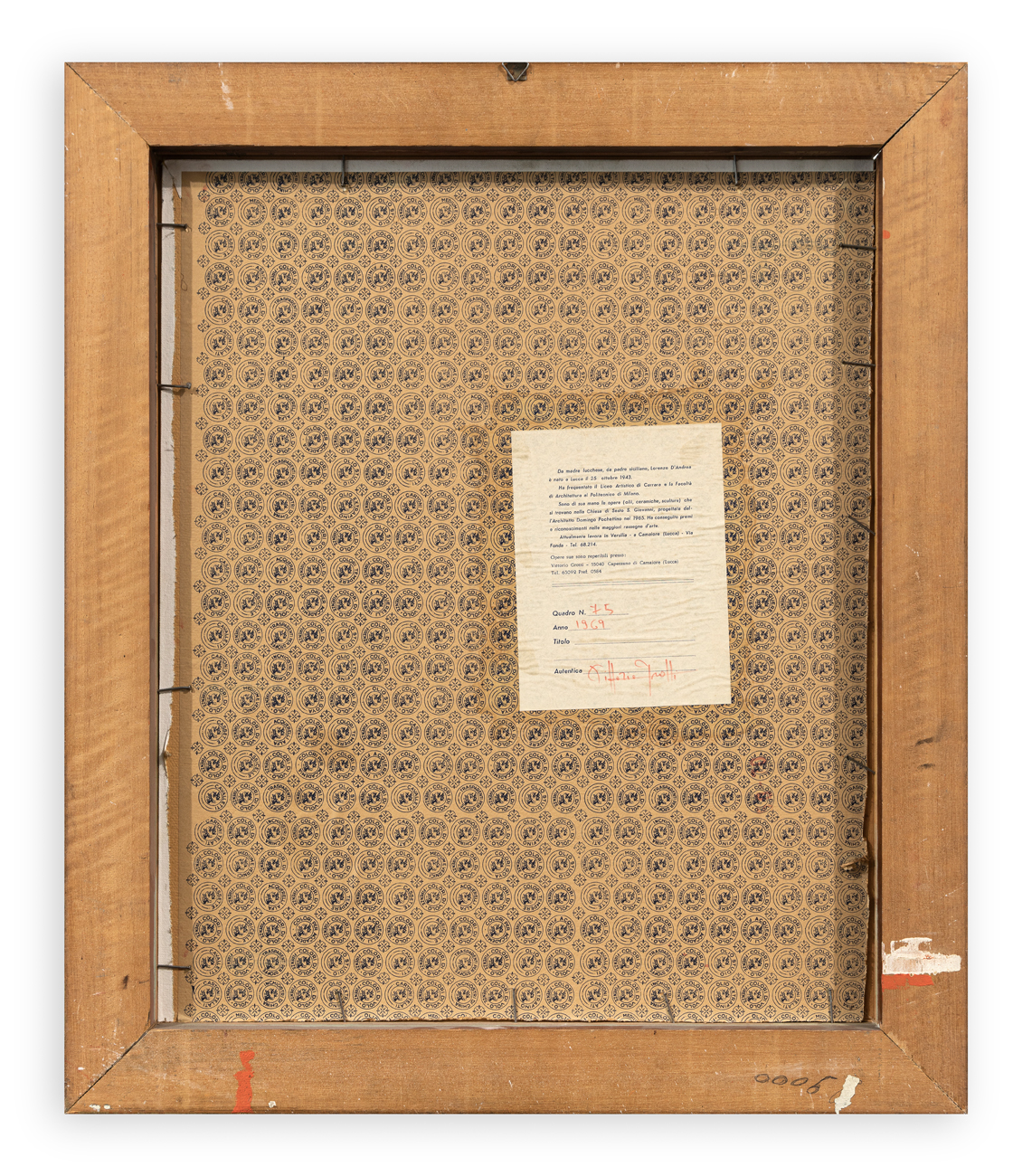 Cartiglio dell'Artista con firma per autenticità di Vittorio Grotti al retro