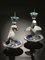 modellati nella forma di una piccola tartaruga sormontata da un volatile, ogni volatile con le ali aperte e dal piumaggio finemente definito, la testa reggente il porta candela,una perla nel becco, poggianti su tartaruga, il tutto su piattino circolare con piedi a motivo Ruyi e decorato a motivi fogliacei, alt. cm 27