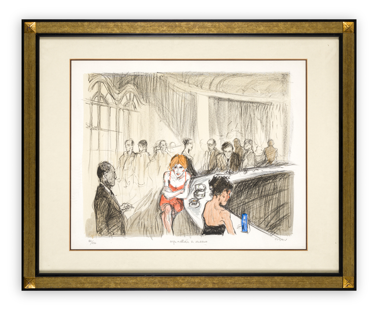 Firma, numerazione (Esemplare 80/120) e iscrizione "acquerellata a mano" a matita al fronte