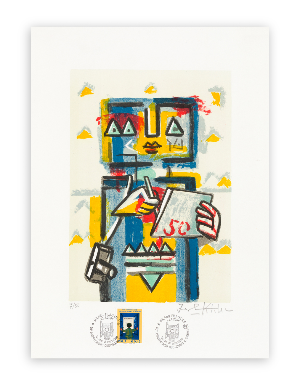 Firma e numerazione (Esemplare 7/50.) a matita al fronte