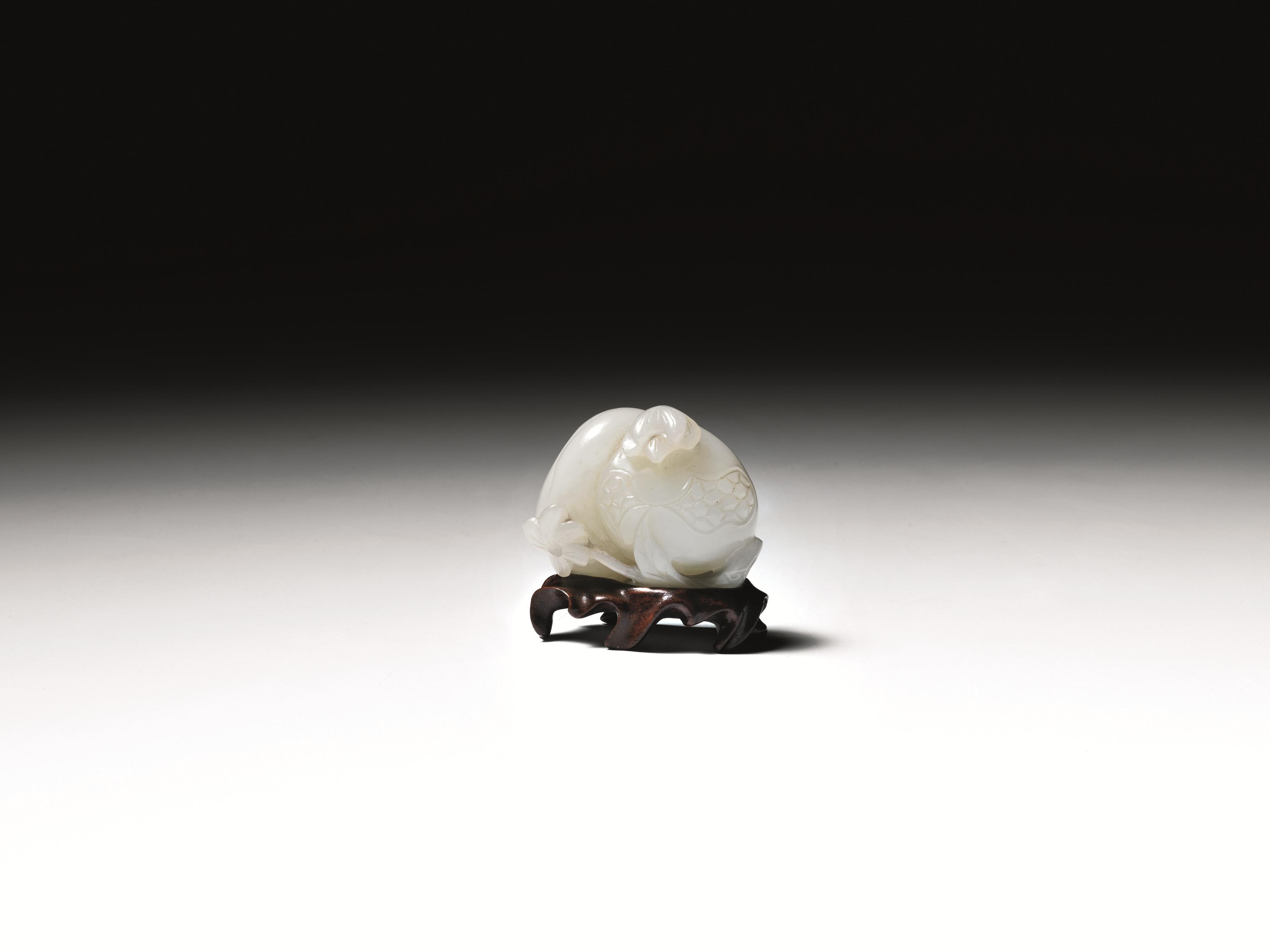 Lotto 103 | Intaglio Cina sec. XIX, in giada, raffigurante due pesche avvolte in tralci...