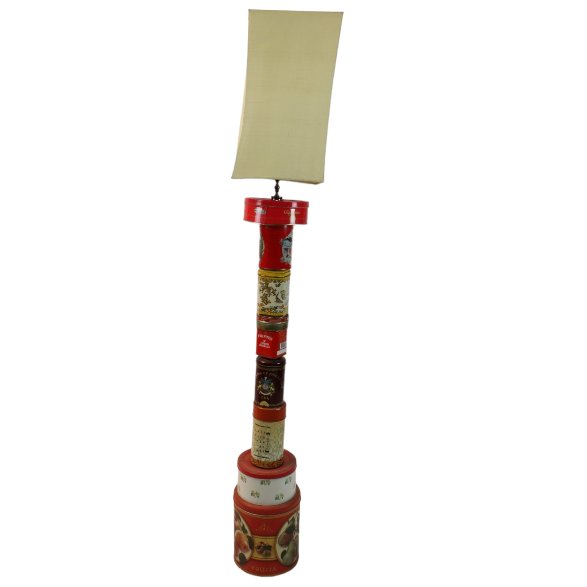 LAMPADA DA TERRA realizzata con scatole di latta arte contemporanea di riciclo creativo h cm 170 x 26