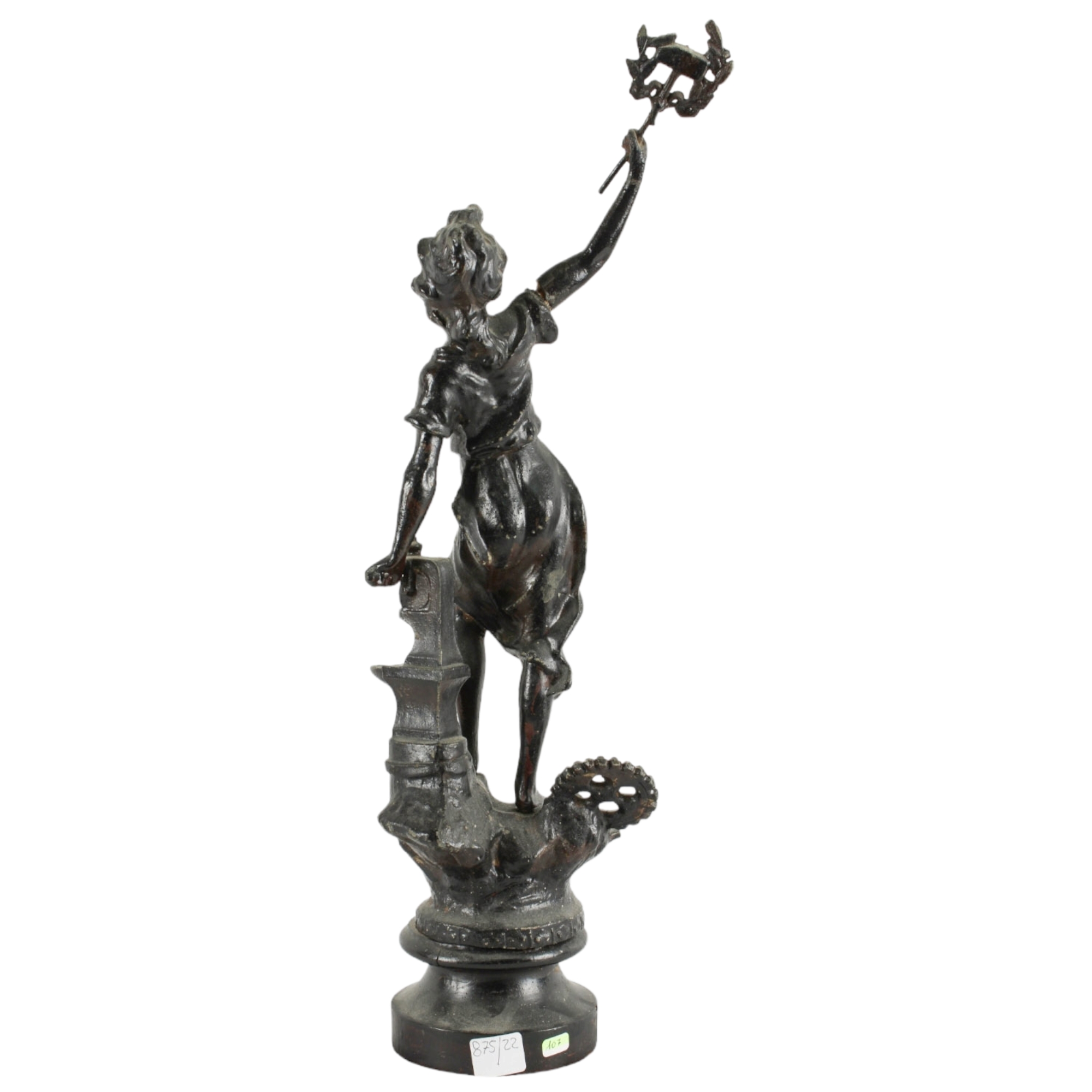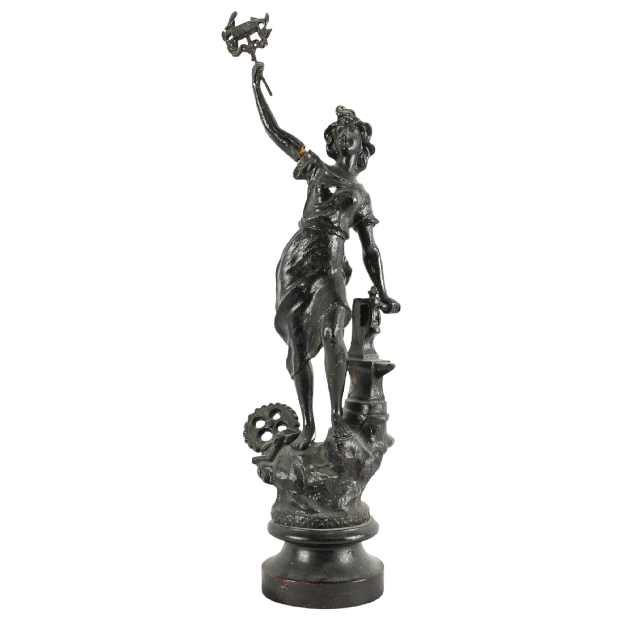STATUA IN ANTIMONIO PATINATO Raff Allegoria del lavoro XIX secolo Italia h cm 43 x 15 rotture